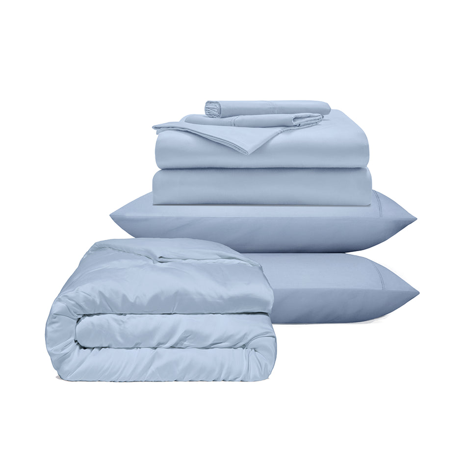 Upgrade your sleep setup with The Starter Bundle—a curated set of bedding essentials designed for clean, cool, effortless sleep. This bundle includes everything you need to refresh your bed: Miracle Made®’s temperature-regulating sheets, pillowcases, and duvet cover—all treated with silver to help prevent odor-causing bacteria and stay fresher between washes.